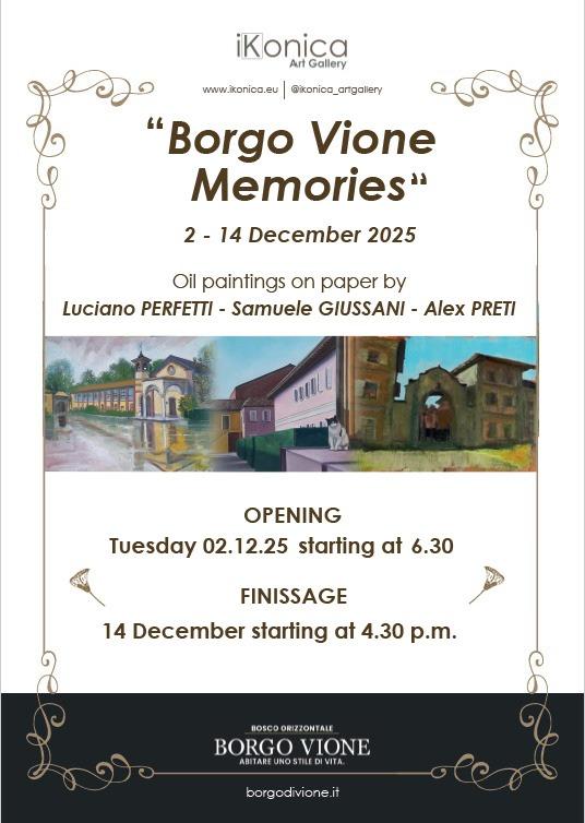 Ultimi giorni per scoprire la mostra dedicata al paesaggio nello storico Borgo di Vione a Basiglio (Milano), organizzata da Ikonica Art Gallery. In mostra 30 quadri realizzati per l'occasione da Alex Preti, Luciano Perfetti e Samuele Giussani.